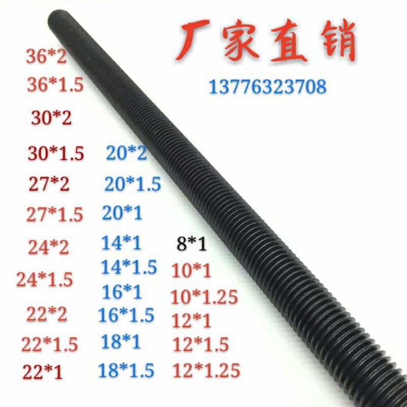 8.8级DIN975高强度发黑细牙丝杆 1米牙条M30*1.5M30*2 全牙螺杆 - 百菊苑商城