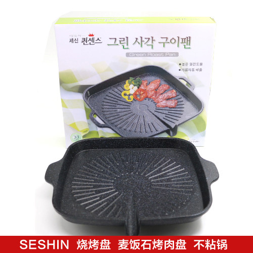 韩国进口SESHIN烧烤盘麦饭石烤肉盘不粘锅户外烤肉锅漏油烤盘包邮 - 韩国厨具批发