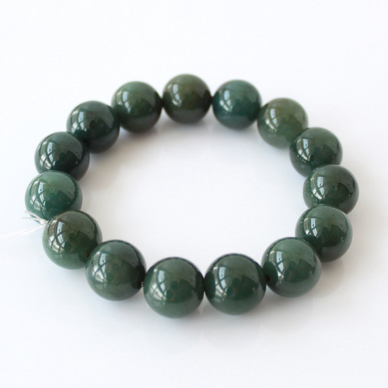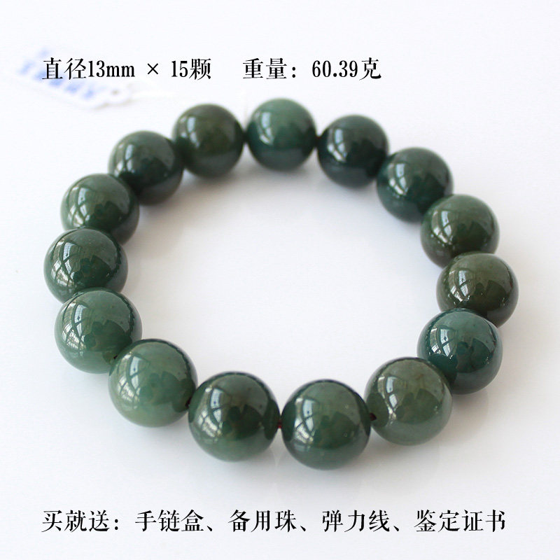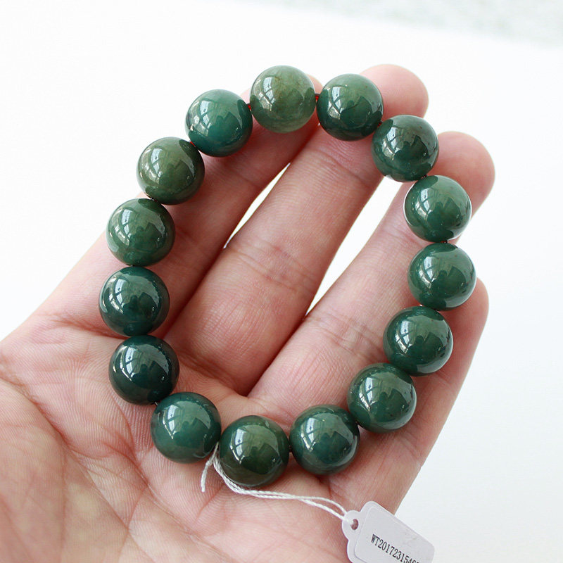 13mm天然A货翡翠玉手链油绿油清料翡翠男士手链男款手珠佛珠 包邮 - 美颜美玉玉器商城