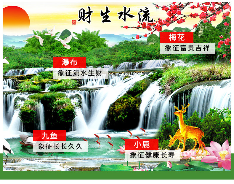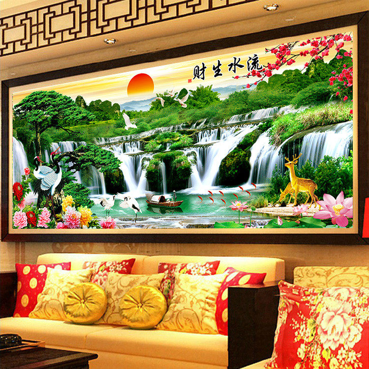 您的位置:女淘日记  >  居家  >  KS色系新款客厅大幅山水风景迎客松流水生财满绣仙鹤九鱼图十字绣