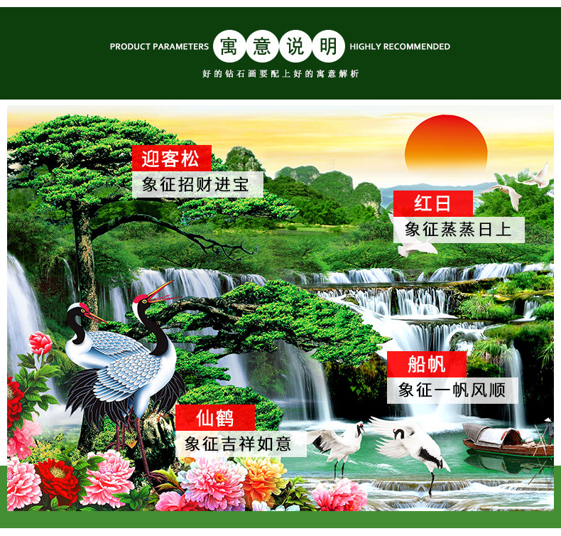 KS色系新款客厅大幅山水风景迎客松流水生财满绣仙鹤九鱼图十字绣 - 拾光绣坊企业店企业店