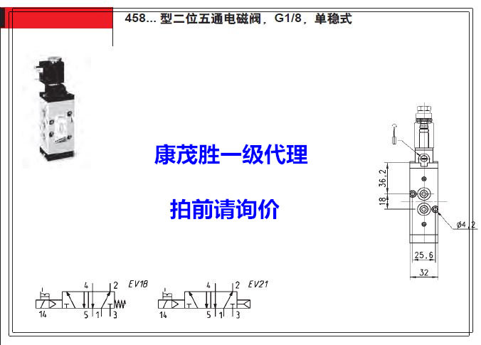 康茂胜(康茂盛)camozzi电磁阀458-015-22 458-016-22