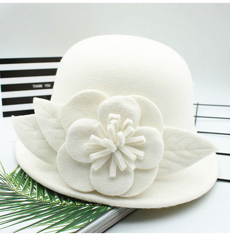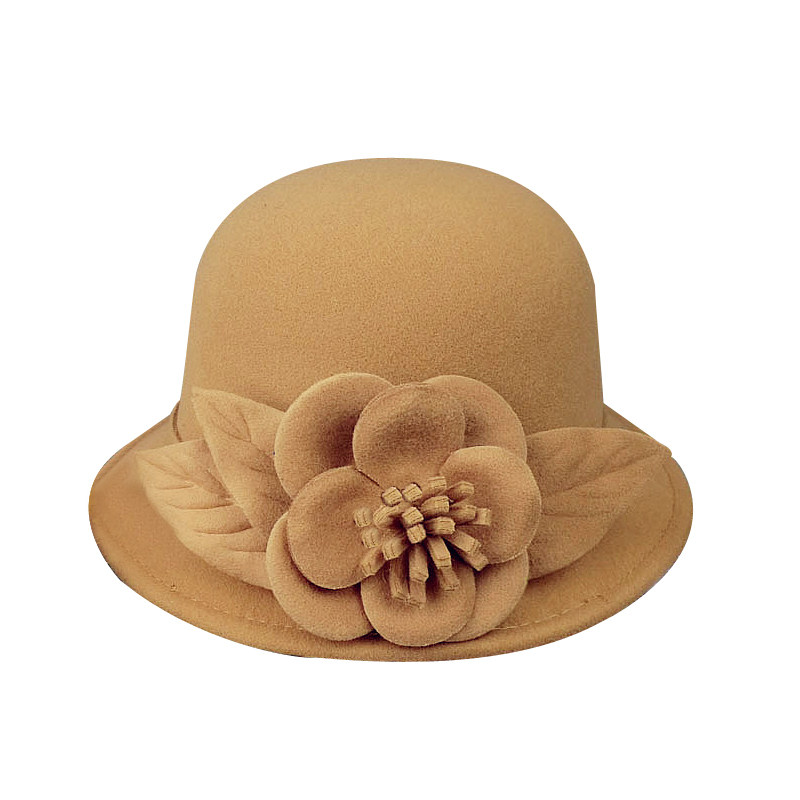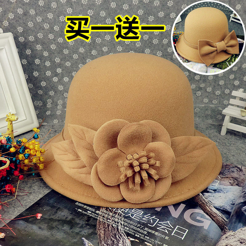韩版秋冬女潮毛呢帽子大花朵英伦复古渔夫帽休闲百搭单色时装盆帽 - 乖灵配饰潮品坊