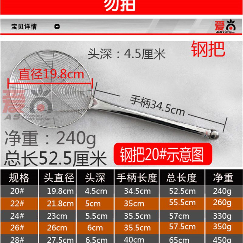 不锈漏勺盘丝大号捞面勺钢把隔油过滤网笊篱钢丝篱网漏粉篱油炸网 - 迎新阁商城的小店40