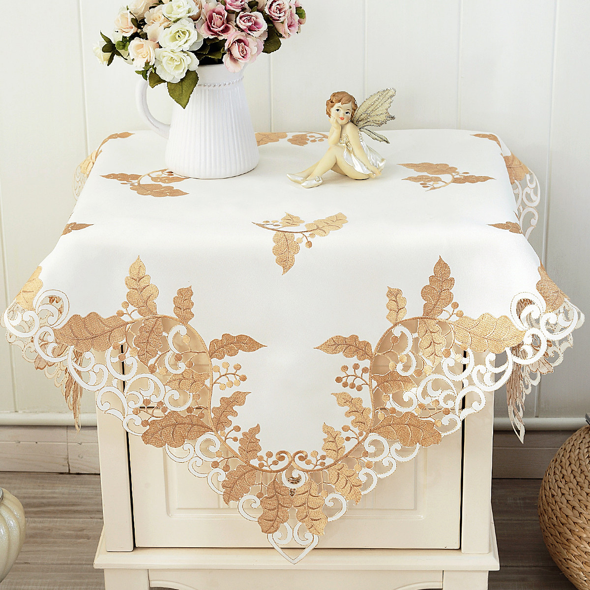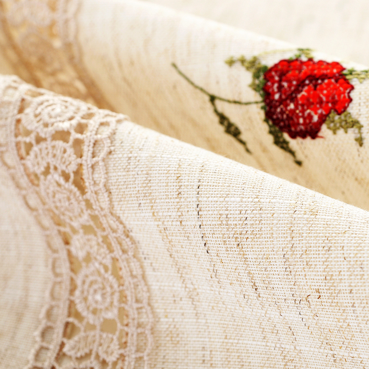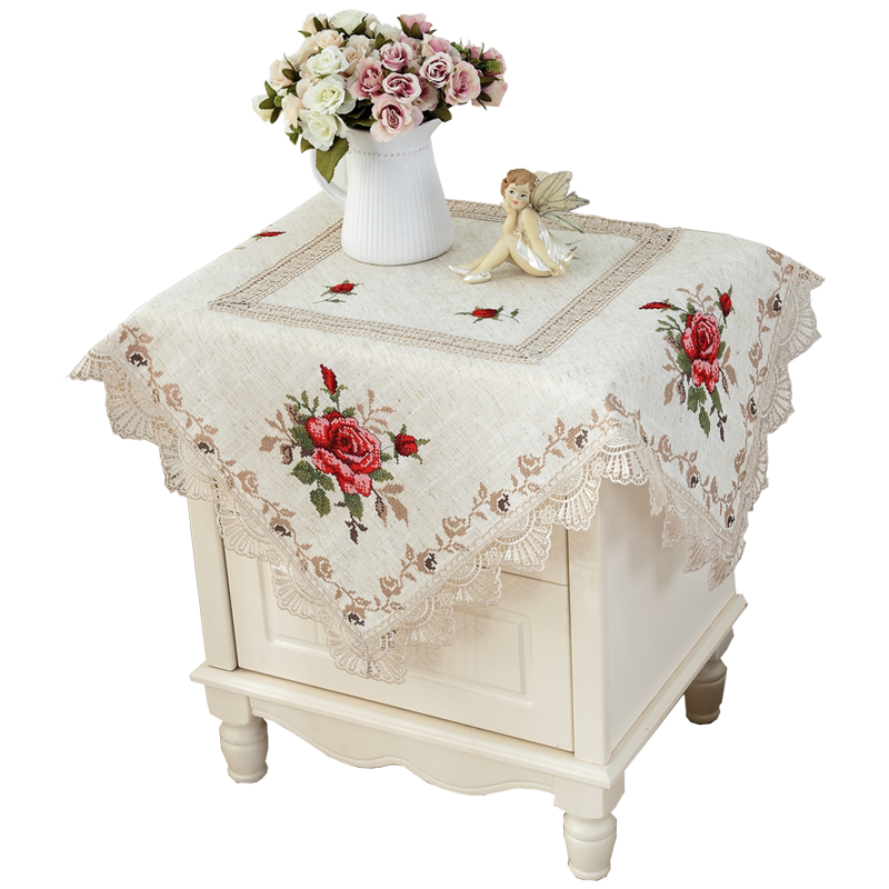 欧式十字绣 小桌布绣花床头柜盖布 盖巾电视机冰箱微波盖巾防尘罩 - 一朵家居旗舰店
