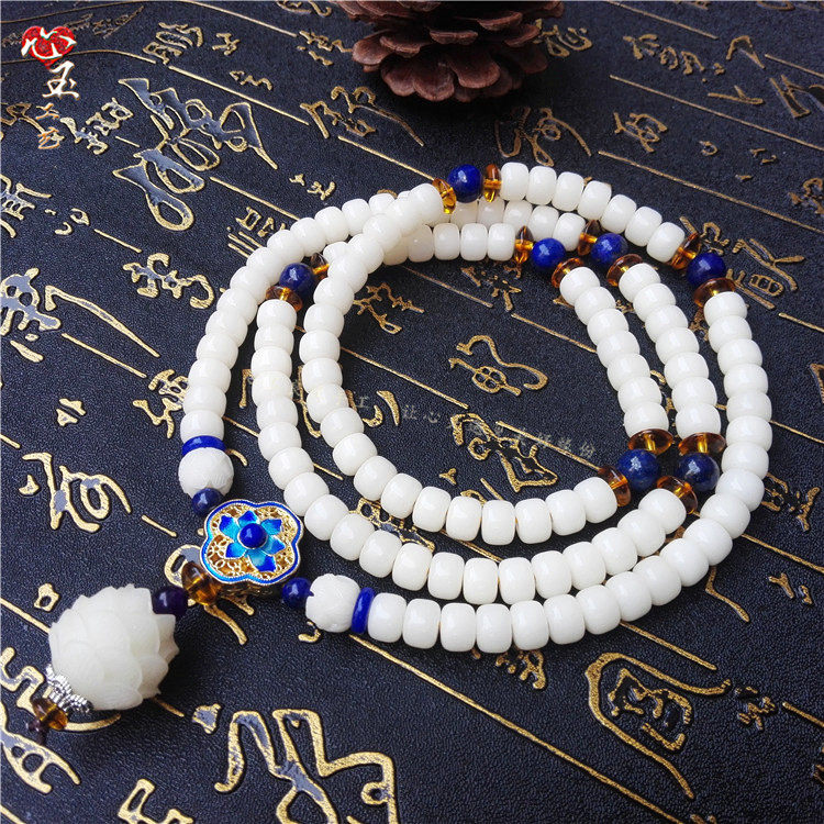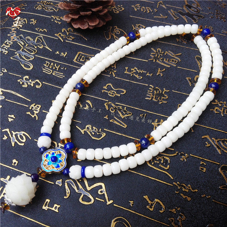 原创设计白玉菩提根散珠男女情侣项链手链手串圆珠素珠108颗 - 心玉良缘手工坊