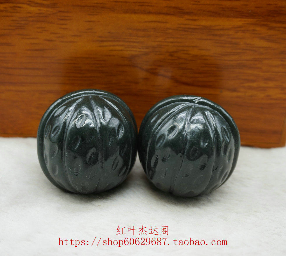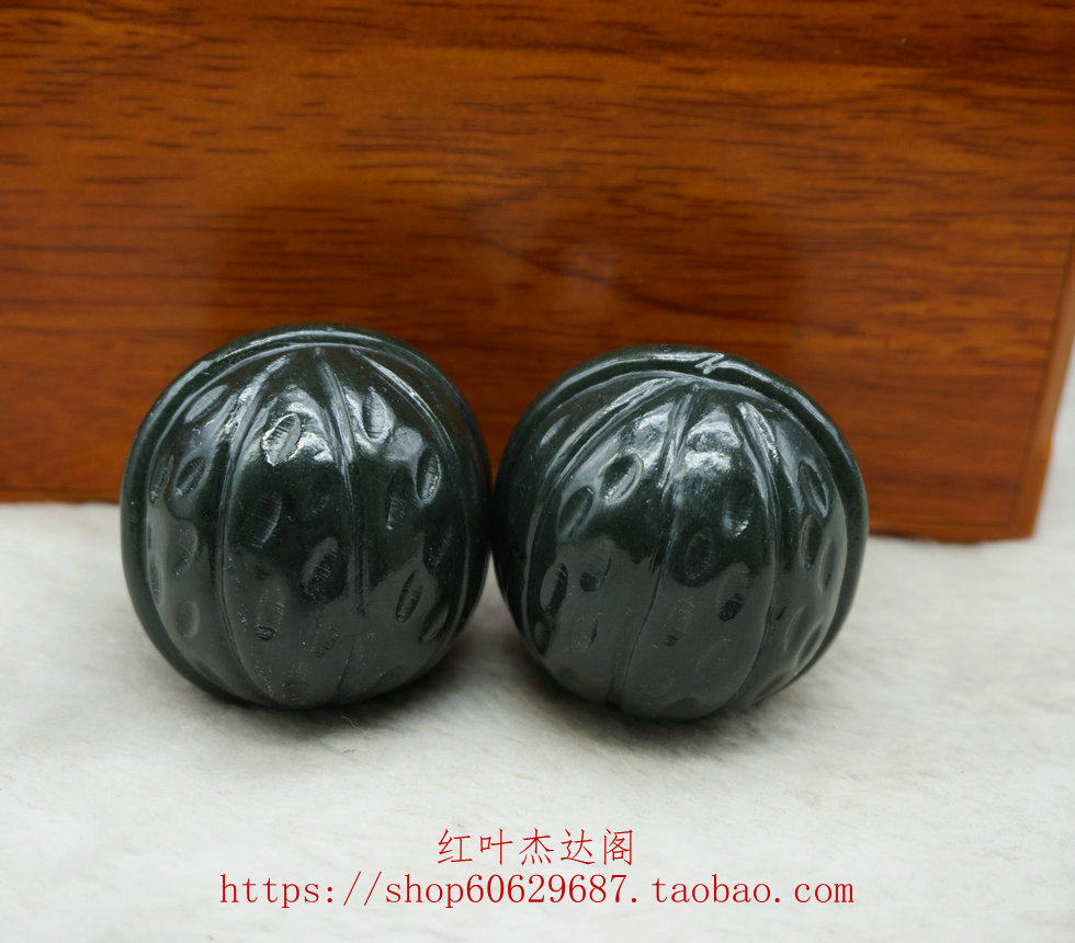 天然玉器天然和田玉青玉精工核桃手把件男士款手玩件送证书送挂绳 - 红叶杰达阁