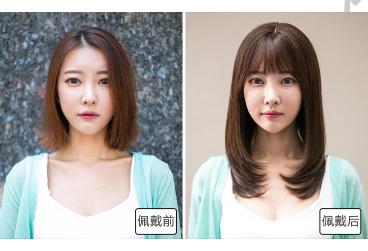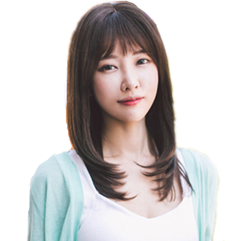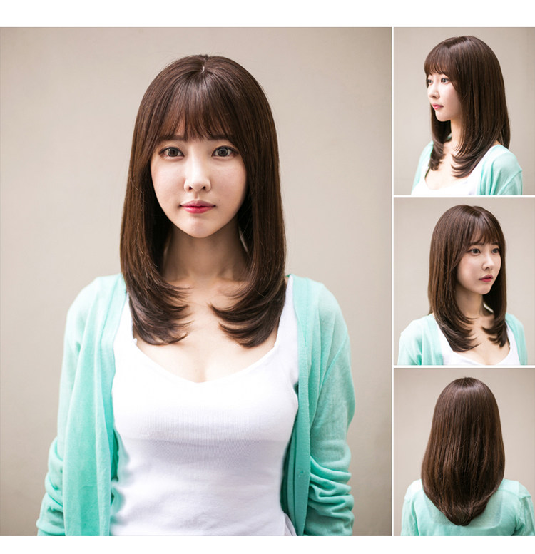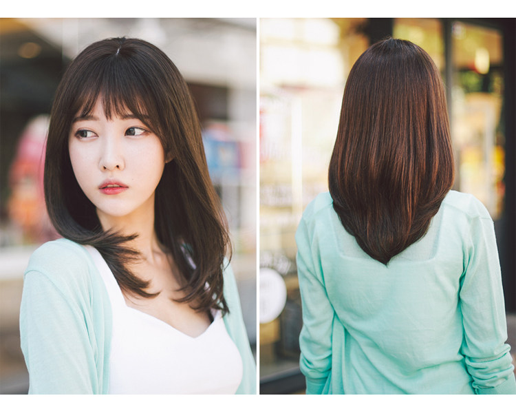 真发假发套女中长直发韩全头套式自然真人发丝空气刘海时尚短发型 - 唯美时尚真发假发