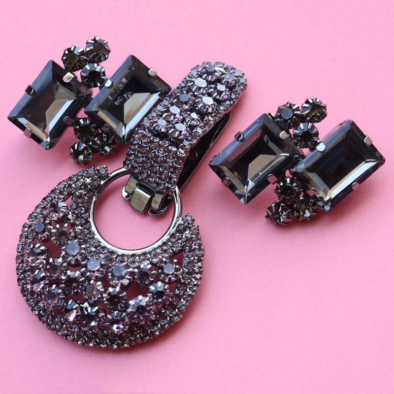 高档水貂貂皮水钻纽扣鸭嘴扣卡子奢华女的对带大衣领口夹皮草搭扣 - 海南发椰林