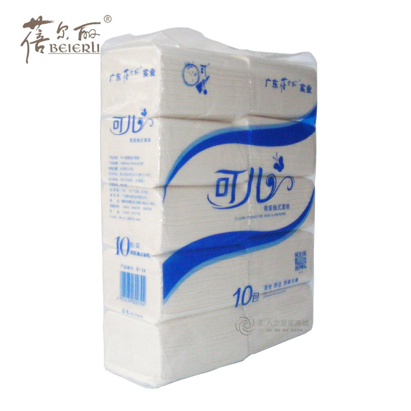 可儿2层260张简装抽纸 纯木浆面巾纸 小吃餐饮酒店纸巾 蓓尔丽E14 - 汇八方纸巾批发