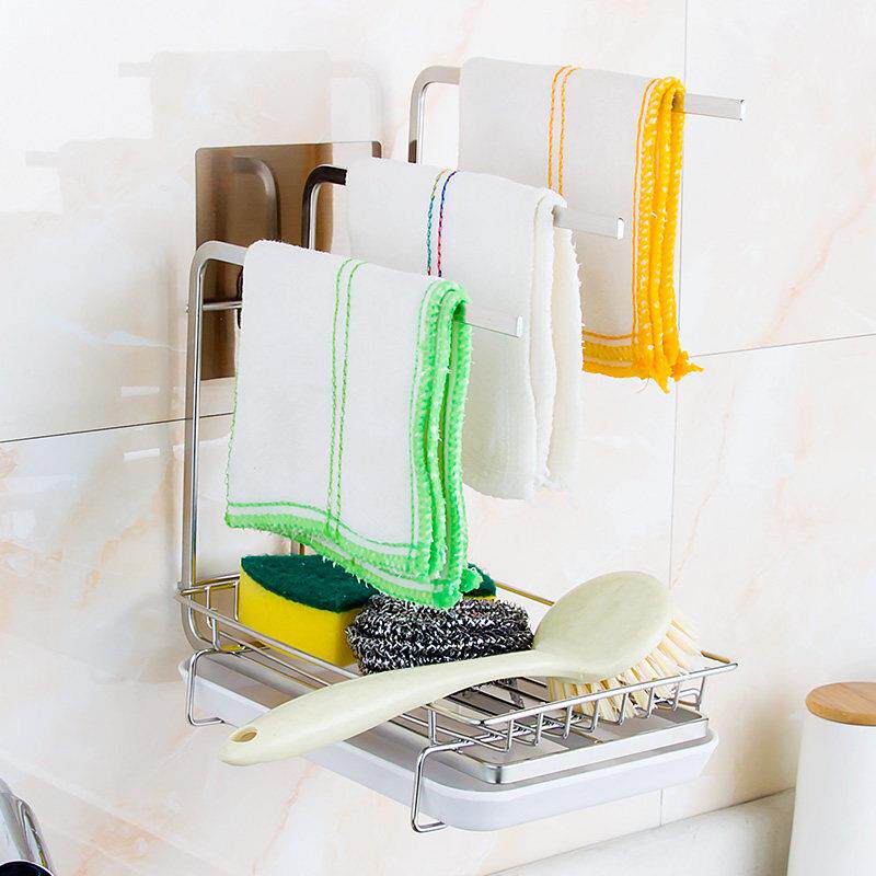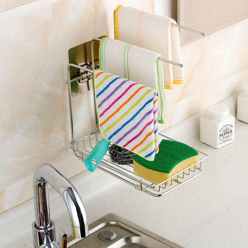 您的位置:女淘日记  >  电器  >  厨房抹布架不锈钢收纳层架水槽免打孔壁挂洗碗布台面毛巾沥水置物