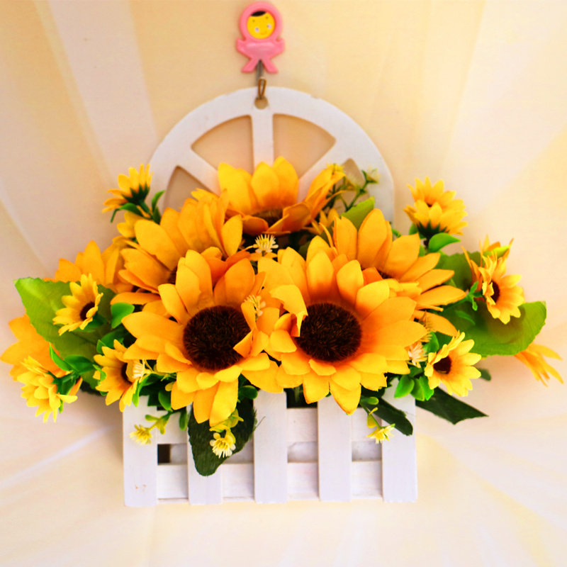 木质栅栏太阳花雏菊仿真花套装墙壁花壁挂花艺摆件绢花家居装饰花