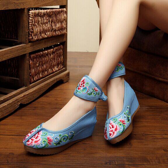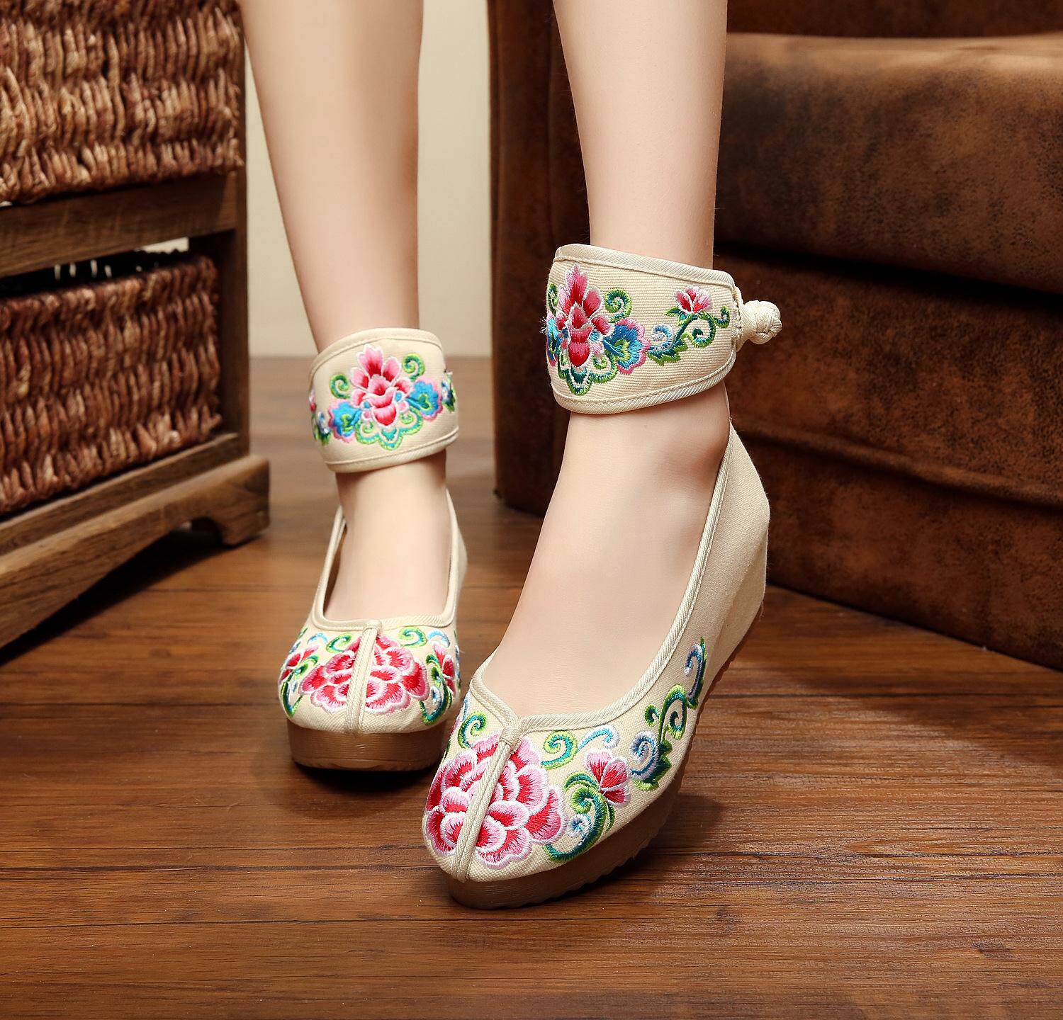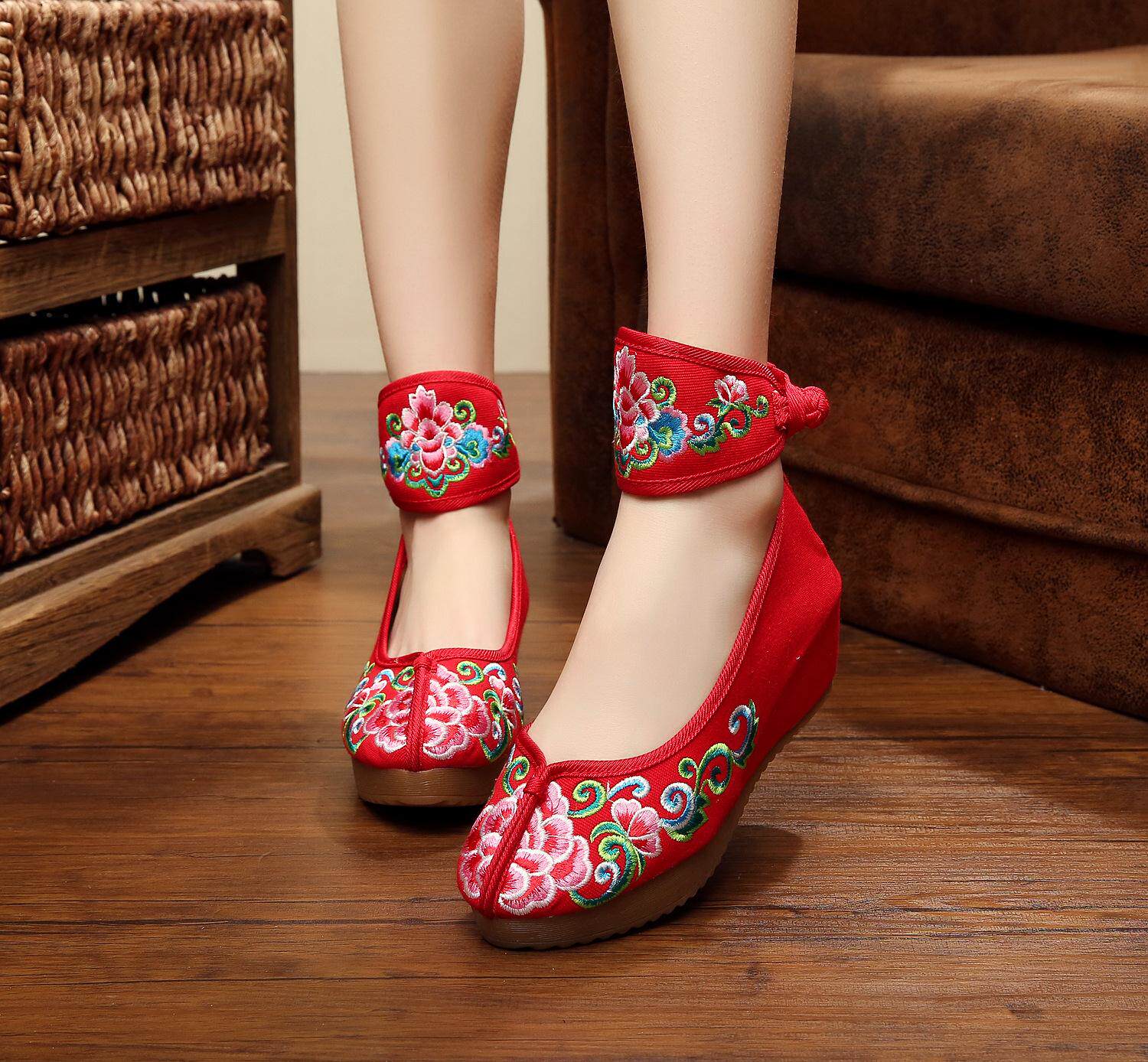 2020春夏新款绣花鞋民族风复古牛筋底坡跟女鞋 内增高特色女单鞋 - 秀出另类女人味