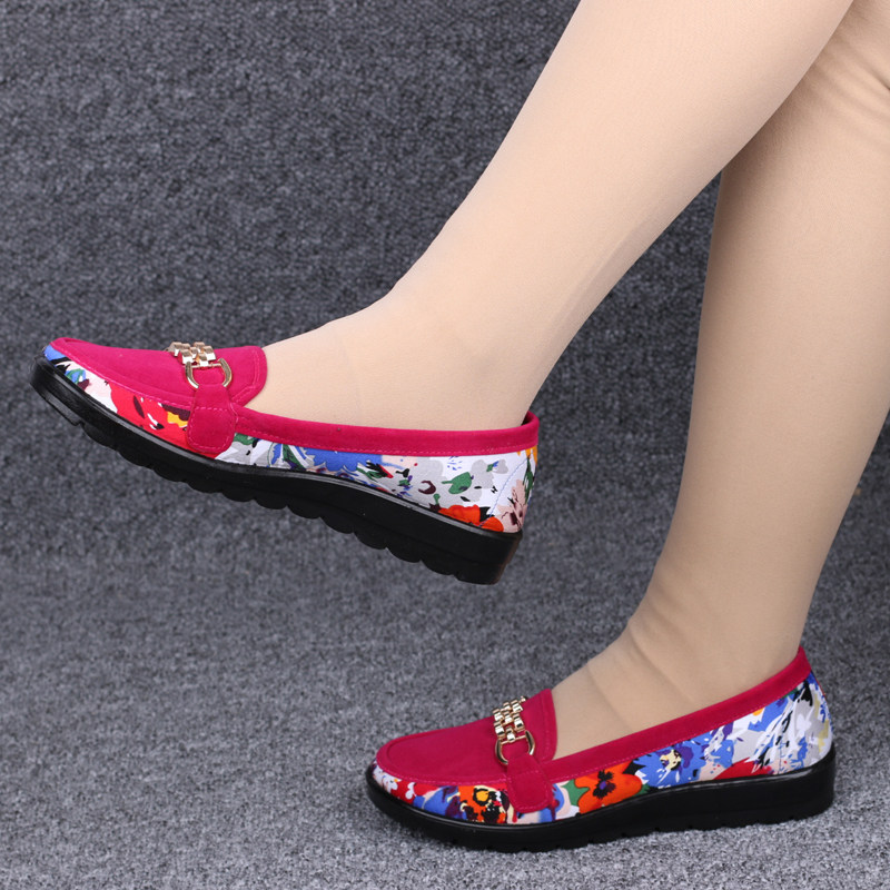 春秋正品老北京布鞋女鞋平底休闲懒人鞋坡跟妈妈鞋单鞋中跟豆豆鞋 - 丽足鞋城