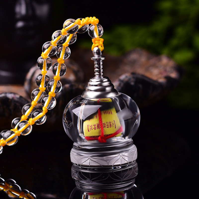 天然白水晶舍利瓶吊坠楞严咒挂件舍利塔胎毛朱砂瓶吊坠嘎乌盒 - 东海映象