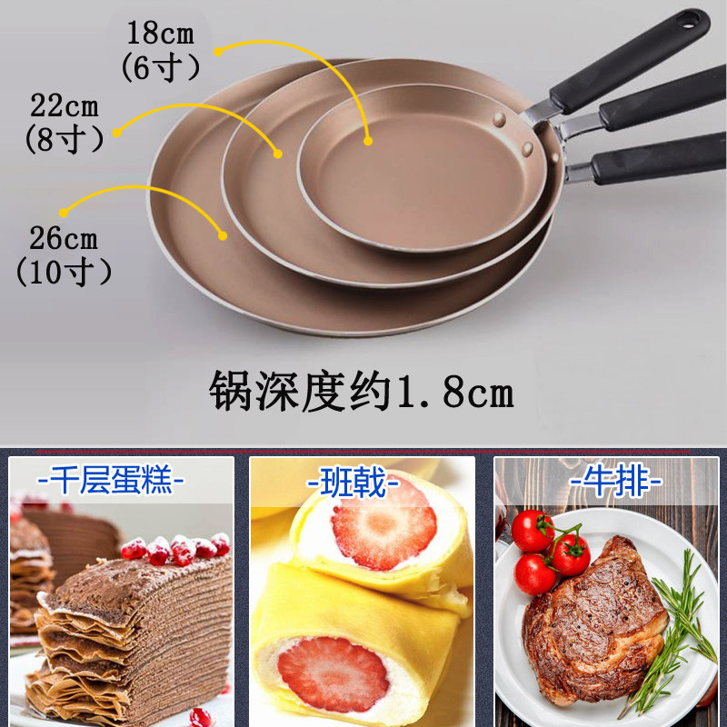 千层蛋糕平底锅不粘锅法焙客饼皮锅 燃气电磁炉班戟皮煎锅6810寸