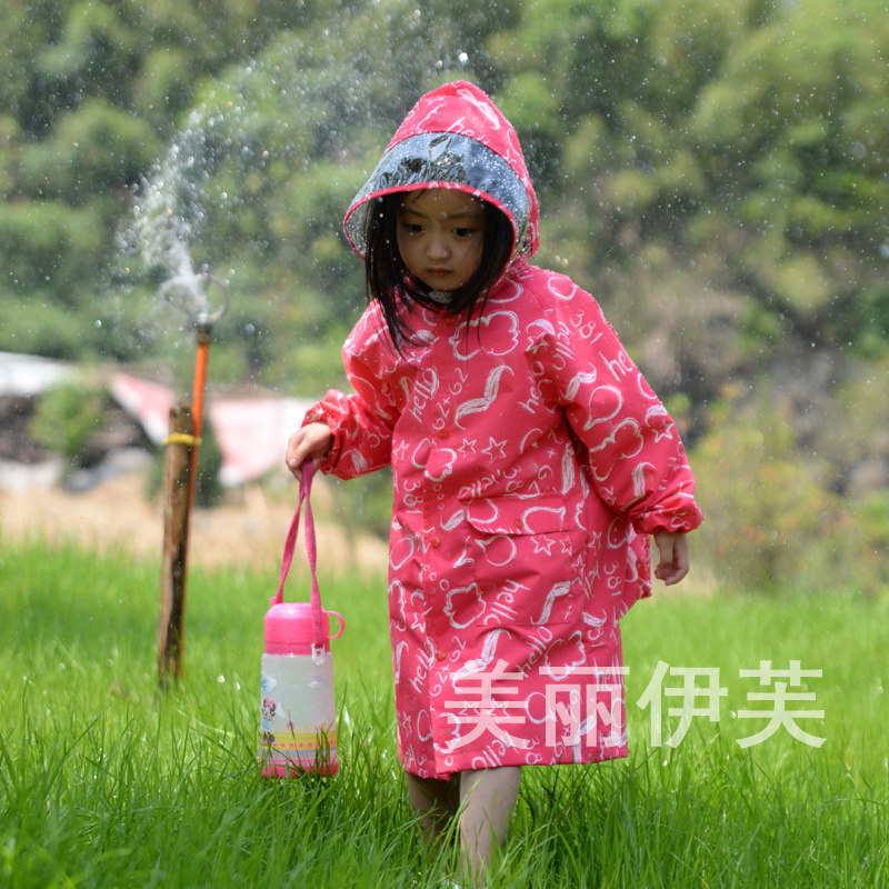 美丽伊芙加厚大帽檐环保无气味儿童雨衣小孩带书包位男童女童雨披