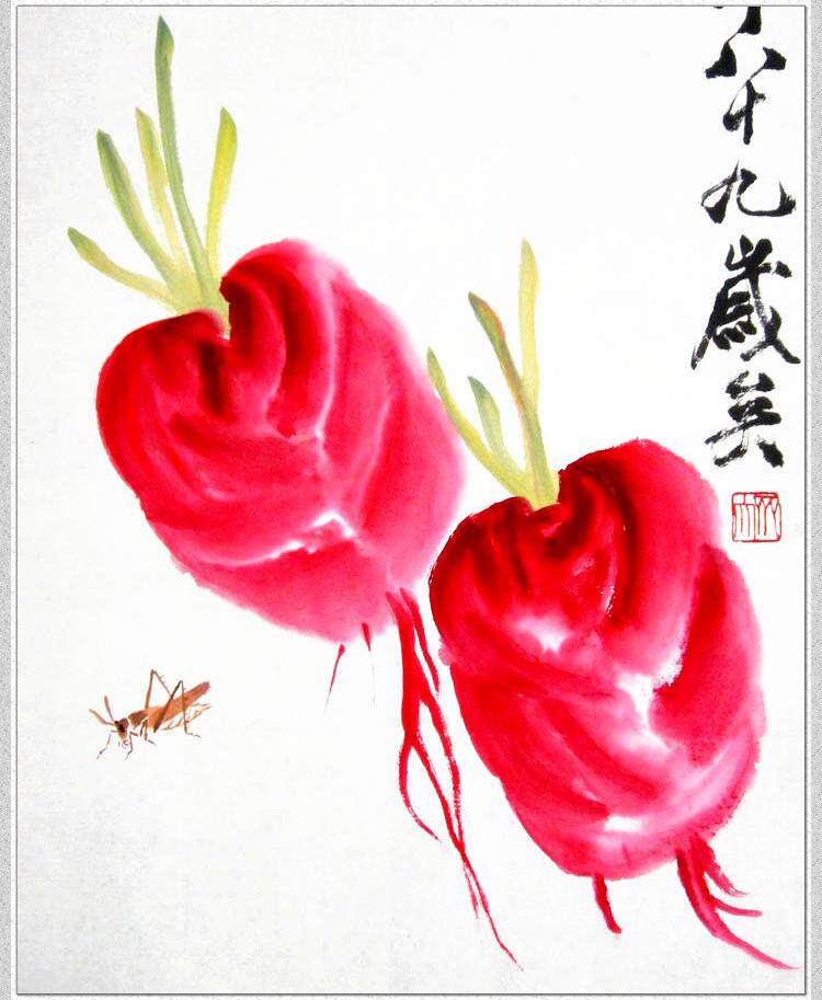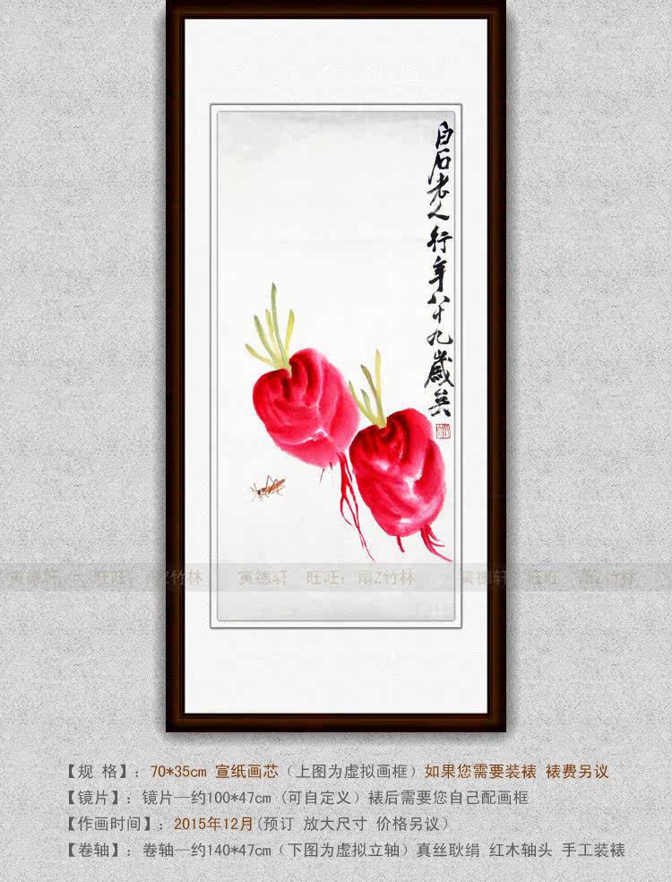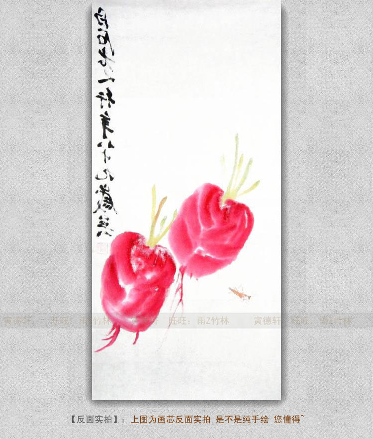 仿齐白石红萝卜蚱蜢图 手绘国画草虫小品 客厅竖条幅挂画名人字画 - 寅德轩书画手绘