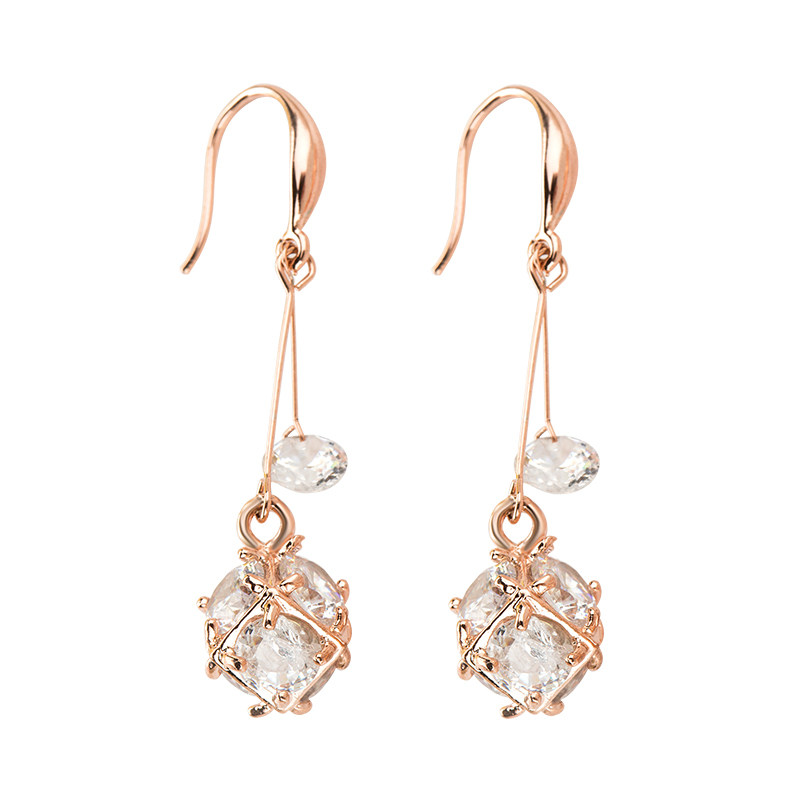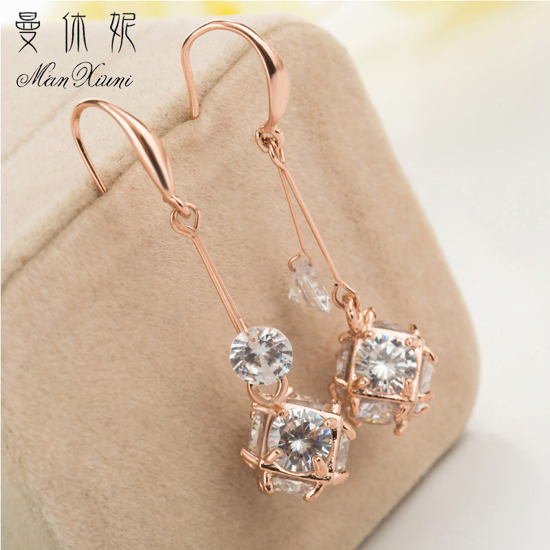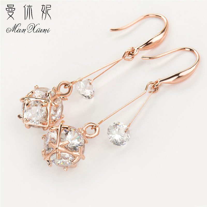 曼休妮玫瑰金时尚流苏耳环女韩国气质简约甜美锆石耳钉防过敏礼物 - 曼休妮时尚饰品