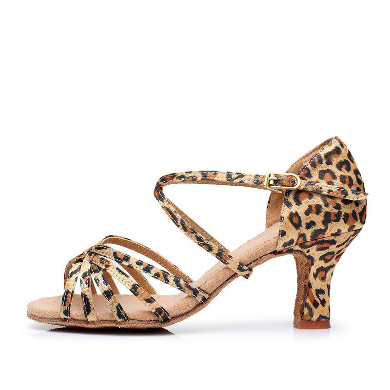 成人女士中跟高跟拉丁舞鞋 缎面肤色女式软底拉丁鞋 - 依尊舞蹈表演服饰商城