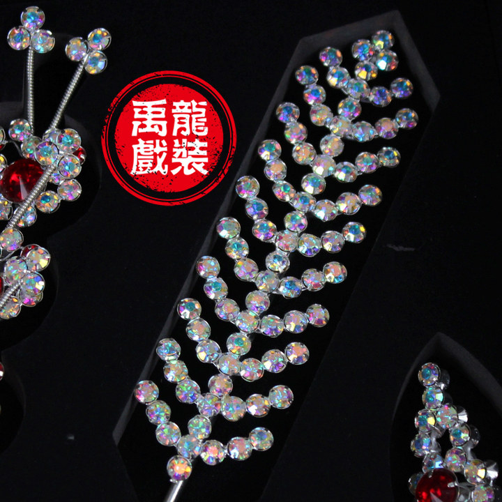 京剧旦角包头青衣头面戏曲舞蹈古装头饰品七彩水钻头面偏凤耳边凤 - 禹龍戏装
