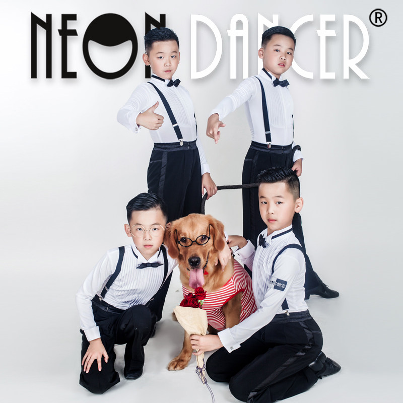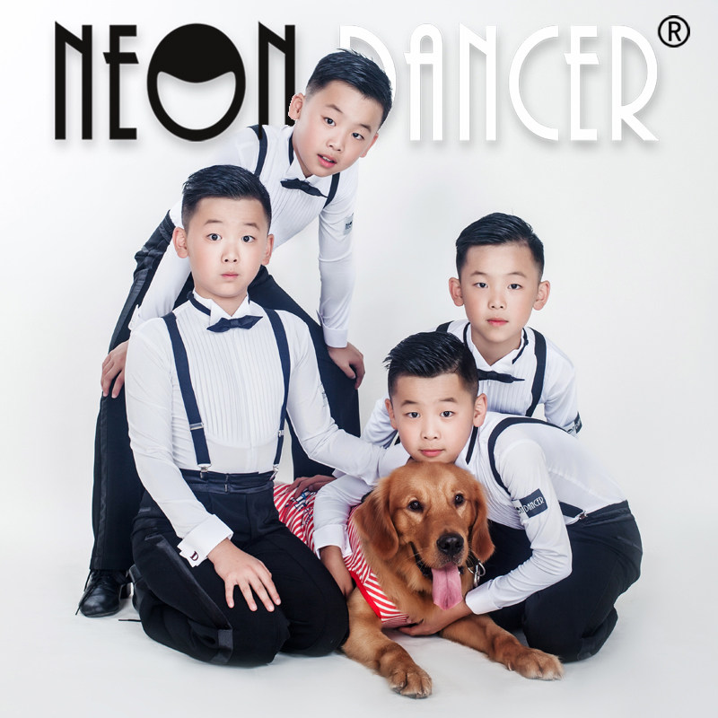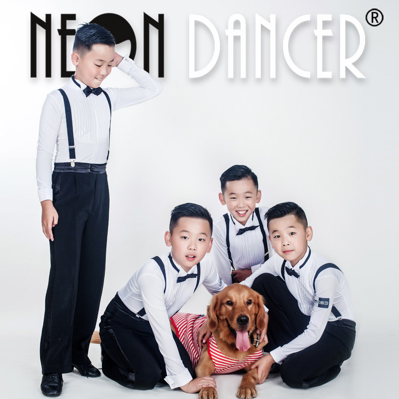 NeonDancer少儿拉丁舞服 男童规定服 考级服 胸前百褶摩登比赛服