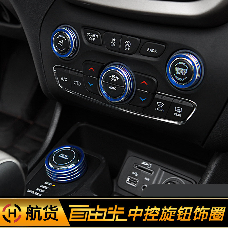 适用于jeep吉普自由光空调开关音响大灯旋钮装饰圈内饰改装配件 - 航货汽车用品专营店