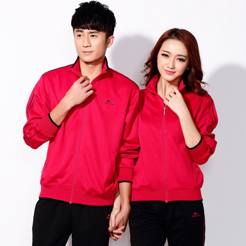 晋冠春秋南韩丝运动上衣女外套大码长袖红色运动服套装茄克情侣款 - 晋冠运动装