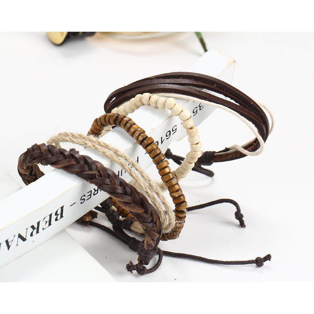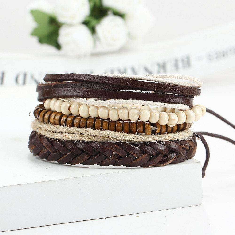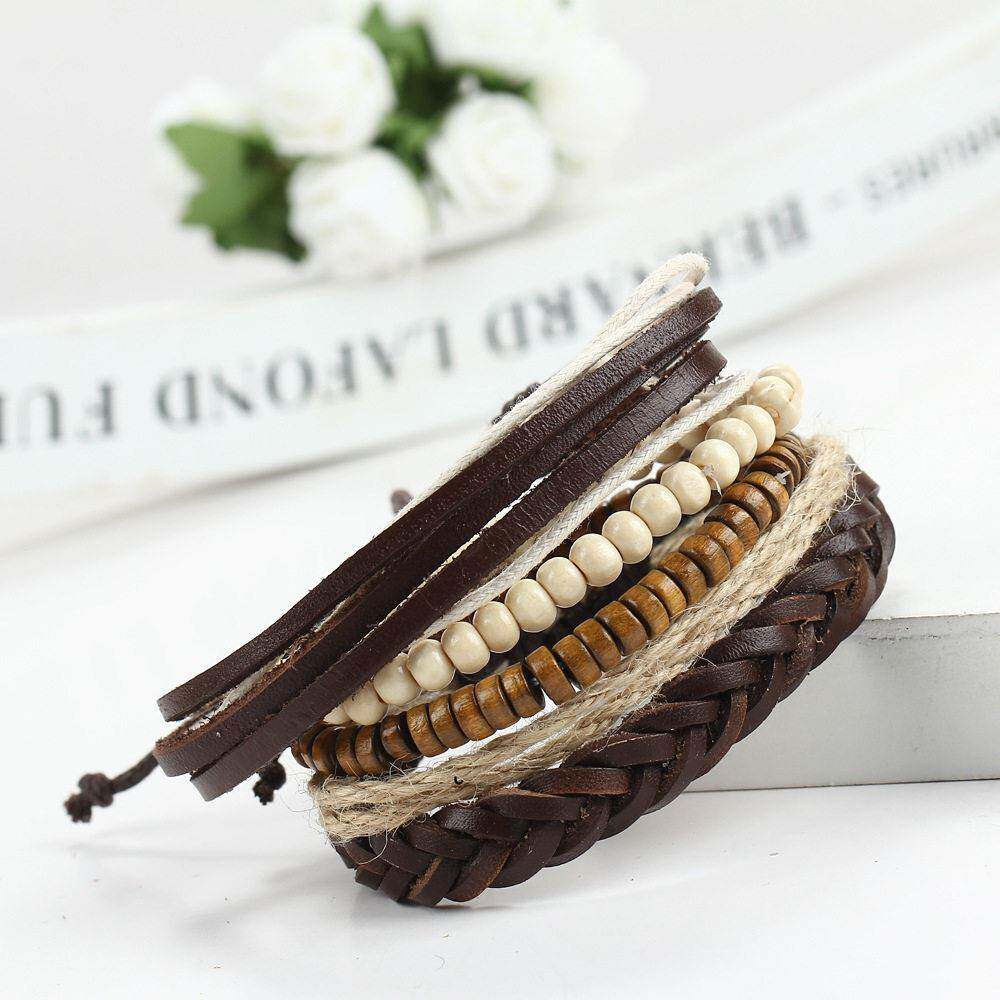 couples hand catenary bracelet men 皮绳木珠多层男女情侣手链 - 一见钟情的爱情23的小店