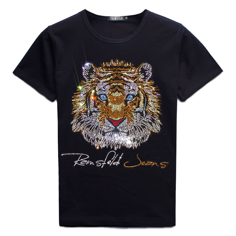夏季男士烫钻老虎头t恤虎年薄款圆领短袖T恤半袖冰丝纯棉情侣百搭 - 东霖子