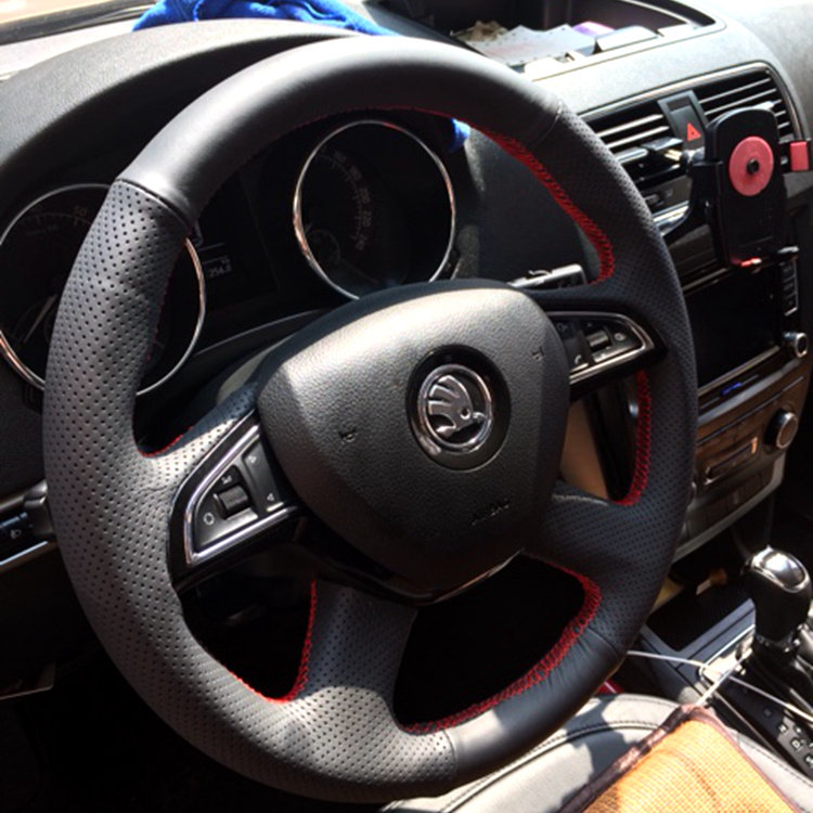 斯柯达新款明锐/晶锐/昕锐/野帝/昊锐专用真皮手缝方向盘套全包 - 车饰界高档汽车用品店