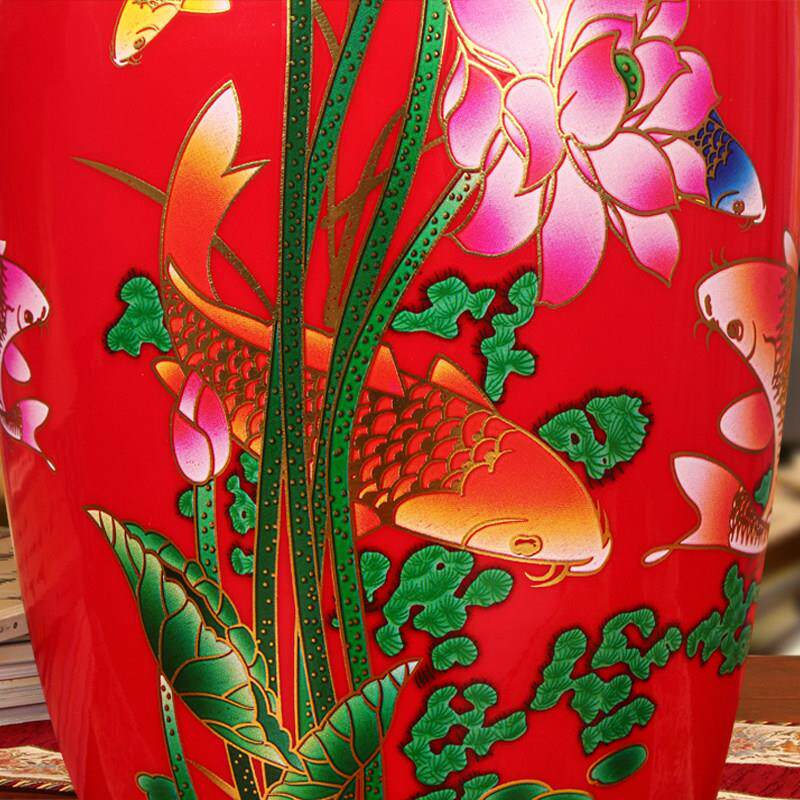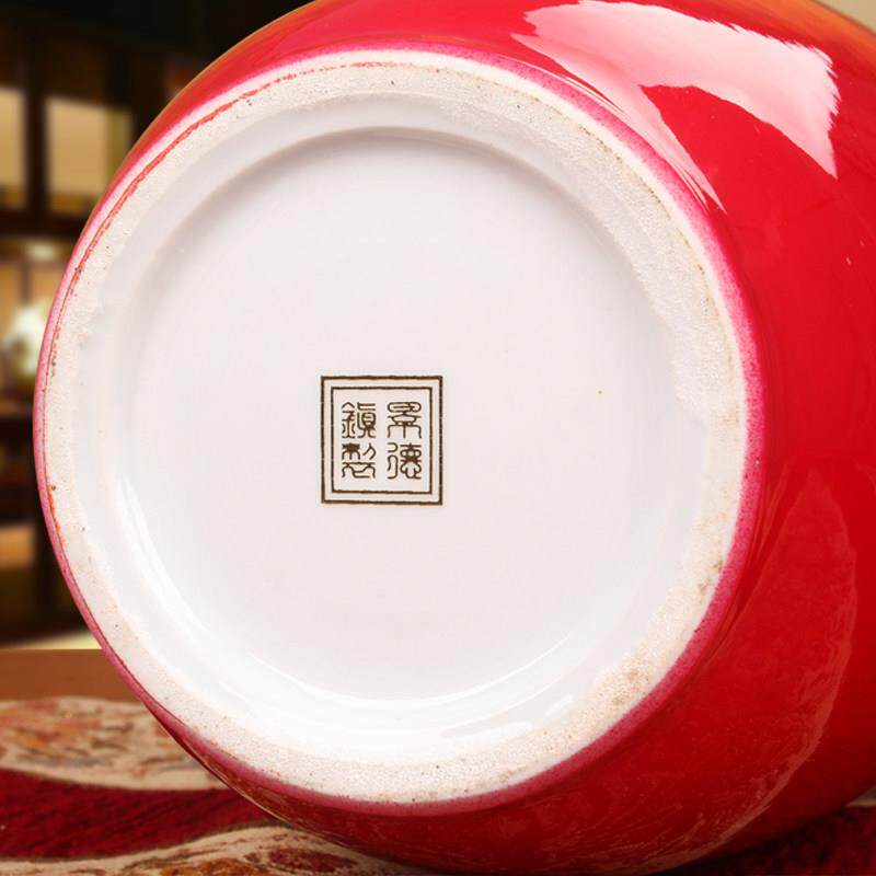 景德镇陶瓷器 时尚中式家居中国红鱼花瓶 客厅装饰器插花摆件设 - 玉衡科技中心企业店