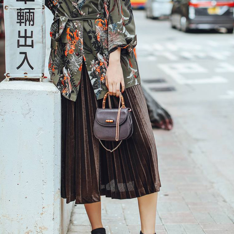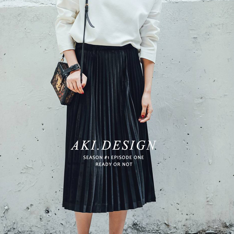 秋冬新品复古丝绒百褶裙百搭过膝长裙休闲高腰抽褶a字半身裙 - DIBO优尚精品女装店