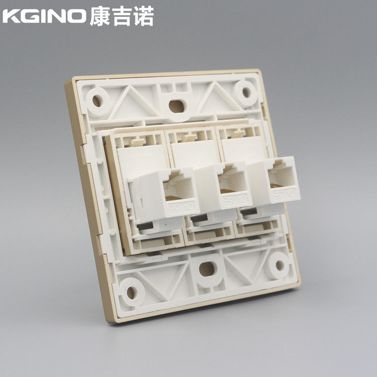 香槟金86型三位网络直通插座金色三3口CAT5E电脑网线模块RJ45面板 - 同浩智能中心
