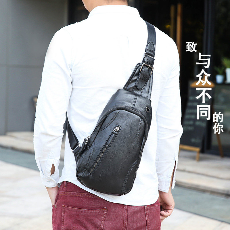 新款男士胸包时尚休闲旅行单肩包斜挎包韩版男包胸前背包潮流软皮