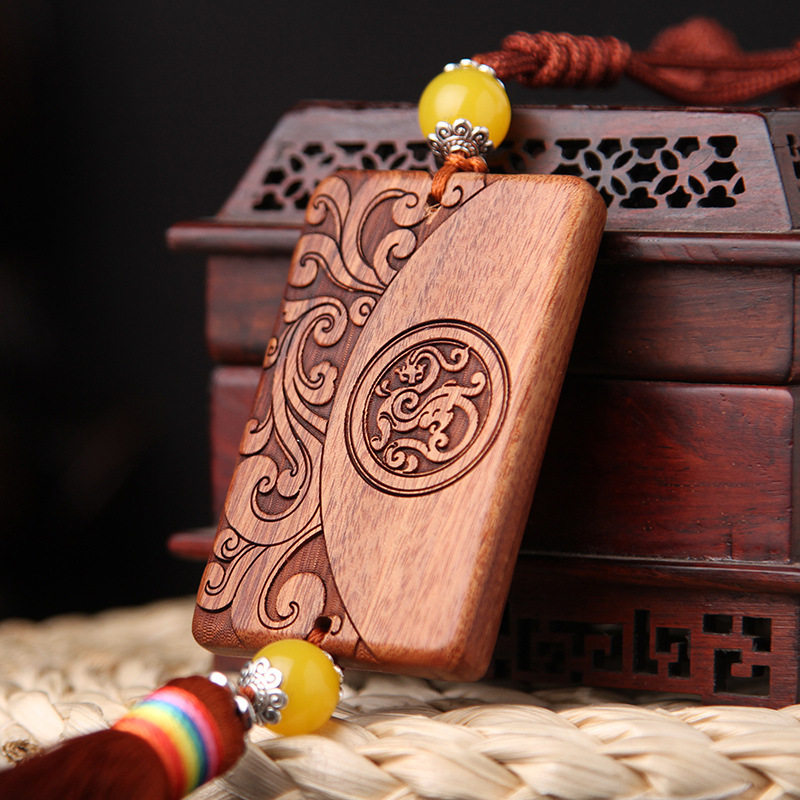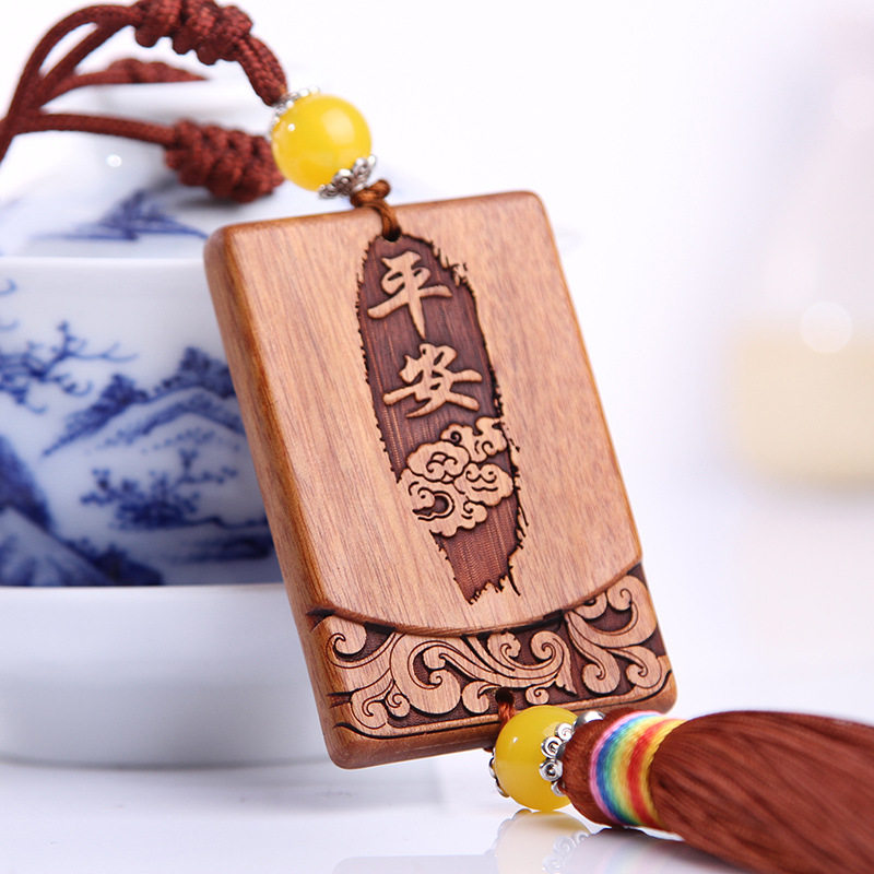 汽车挂件 花梨木雕车内饰品车内挂饰 手工精品车挂吉祥平安符车挂 - 湖海海鲜馆