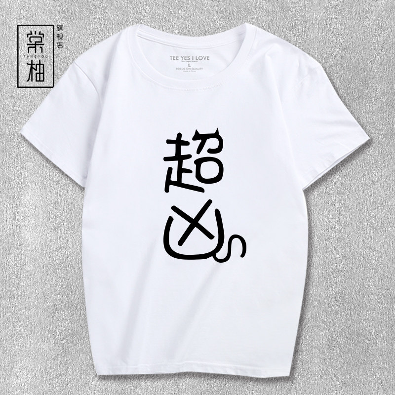 二次元 超凶 创意 个性文字 网络表情 卖萌 动漫周边短袖 T恤衣服 - 棠柚旗舰店