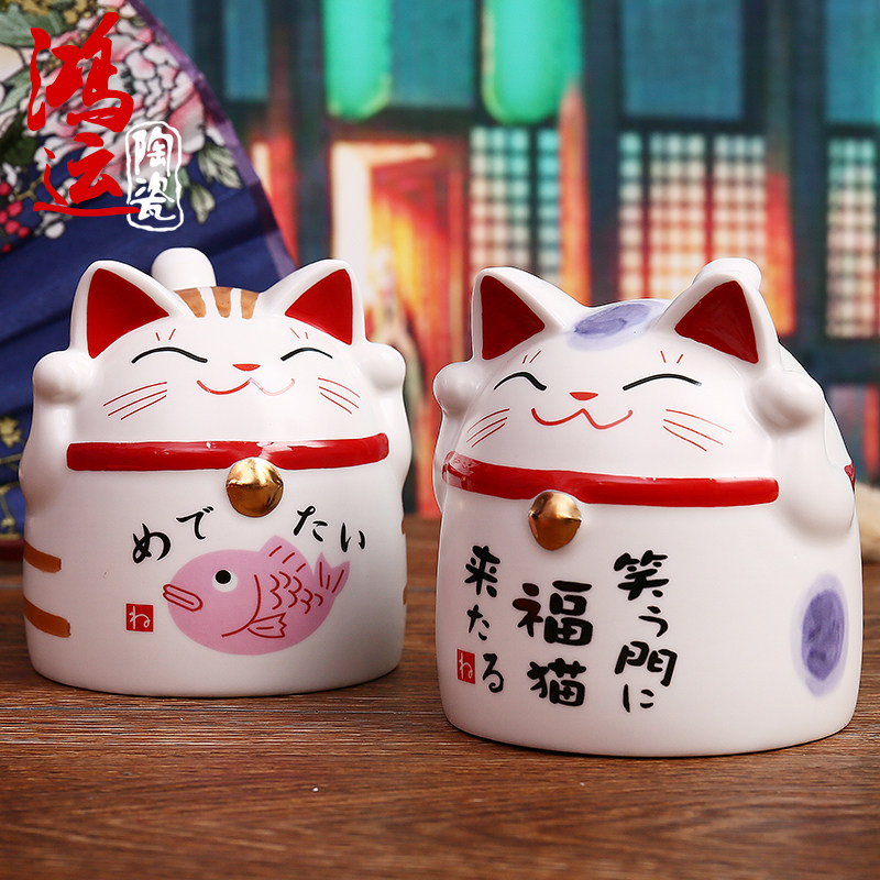 日本可爱陶瓷招财猫情侣杯 倒立对杯 创意礼品生日礼物包邮 - 精品招财猫