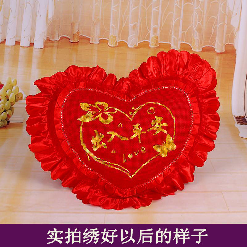 包邮印花十字绣抱枕全红送礼婚庆情侣桃心一对出人平安一帆风顺