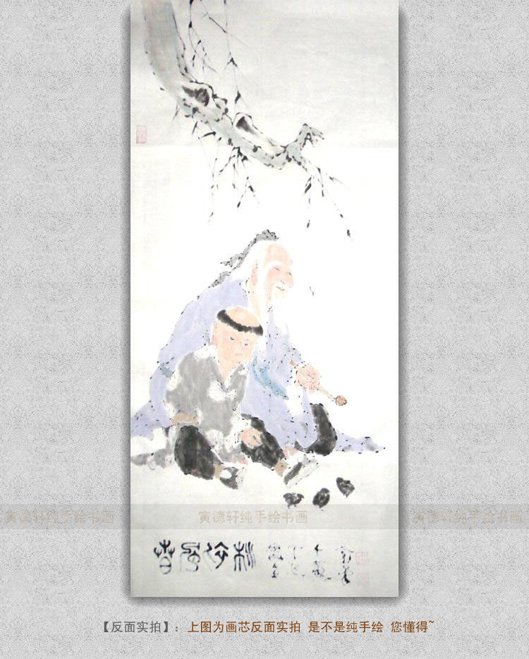 手绘国画仿范曾人物春风初沐图老者童子雏鸡客厅条幅挂画名家字画 - 寅德轩书画手绘