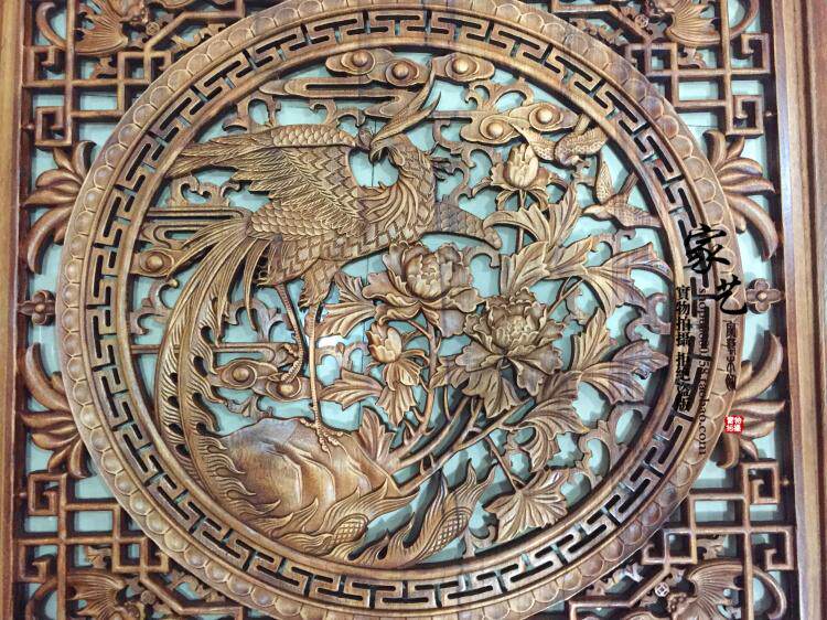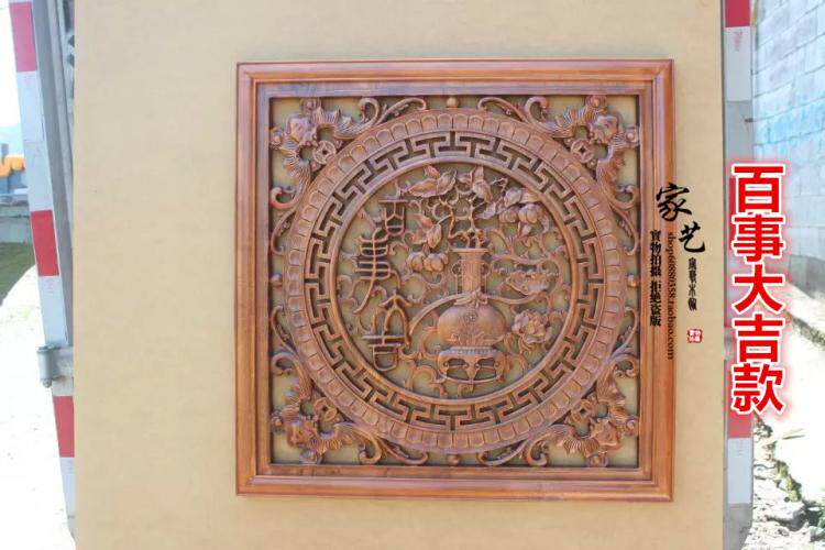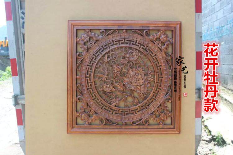 东阳木雕花中式装修客厅香樟木实木挂件玄关正方形80CM壁挂工艺品 - 家艺木饰
