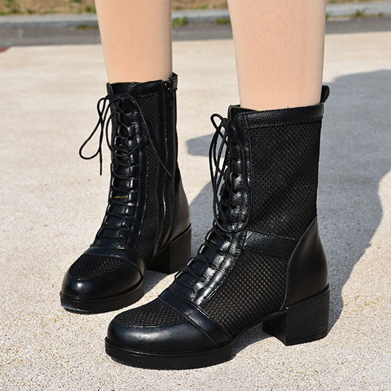意中飞舞蹈鞋真皮透气网面跳舞鞋软底现代新款女士夏季广场舞靴子 - 意中飞品牌店