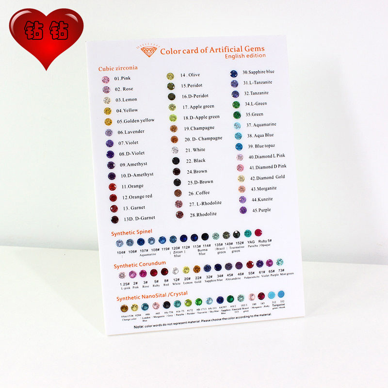 彩色锆石尖晶刚玉玻璃宝石标注色卡 30种锆石 150种颜色玻璃 - 爱钻钻精美宝石铺