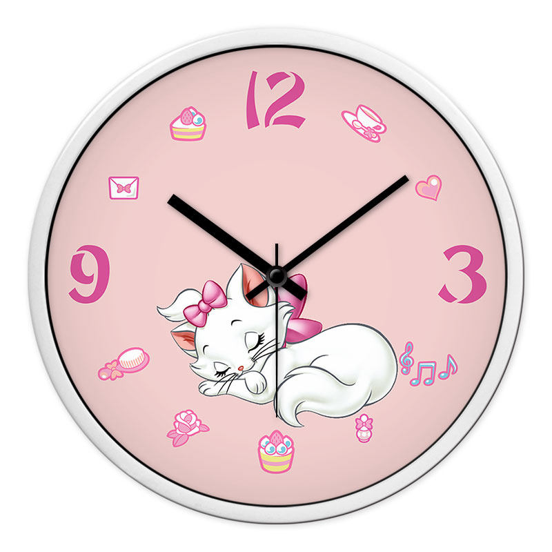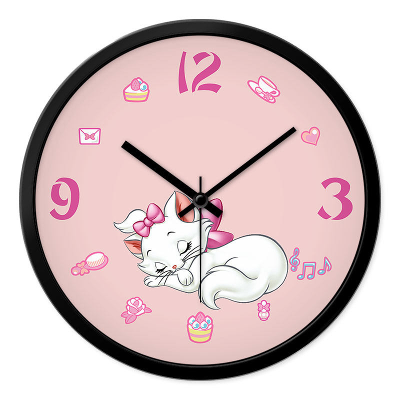 摩门儿童房卡通小猫挂钟卧室客厅静音时钟电子石英钟表粉红色挂表 - 海陆风潮流精选店