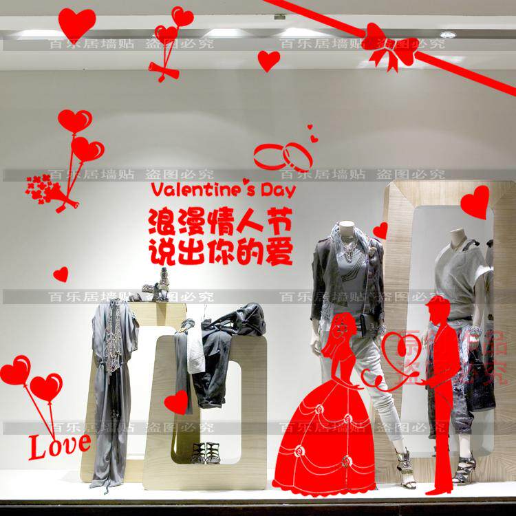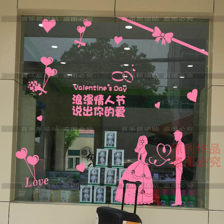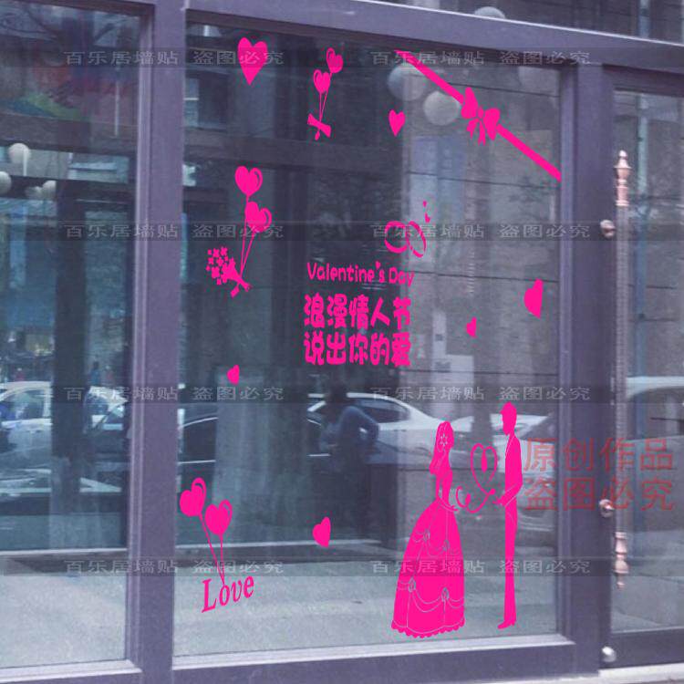 情人节墙贴纸婚纱店影楼珠宝店橱窗装饰玻璃贴纸浪漫爱情氛围布置 - 百乐居墙贴
