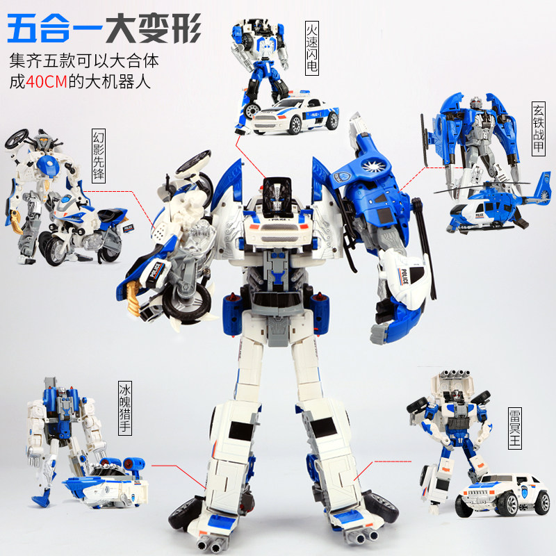 儿童男孩合金变形玩具5合1合体正版模型汽车机器人飞机摩托警察车 - 大舅哥车模专业店