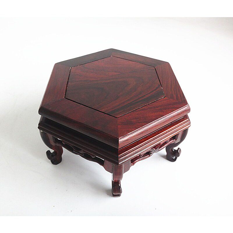 红木雕底座实木鸡翅木玉石摆件紫砂壶花瓶文玩小型六角底座壶托 - 霜雪红枫商城的小店35