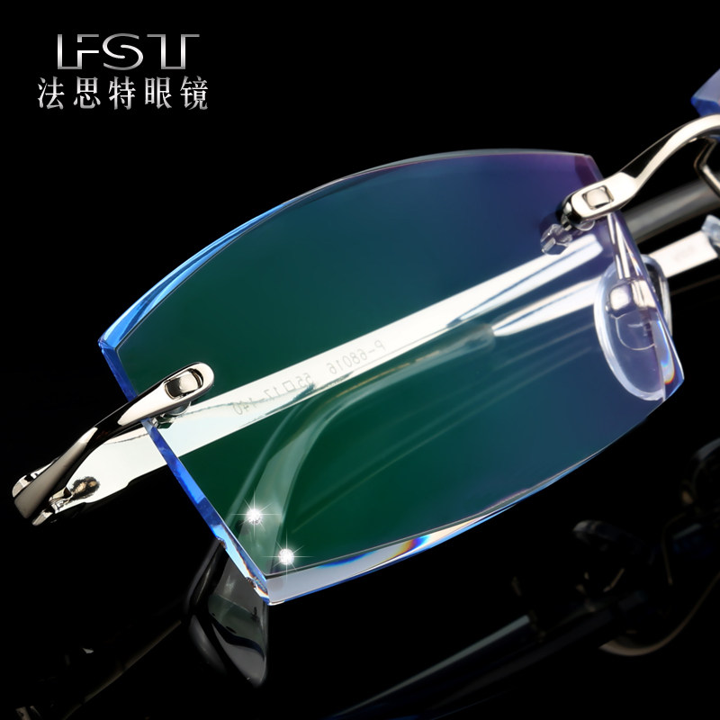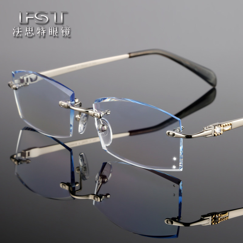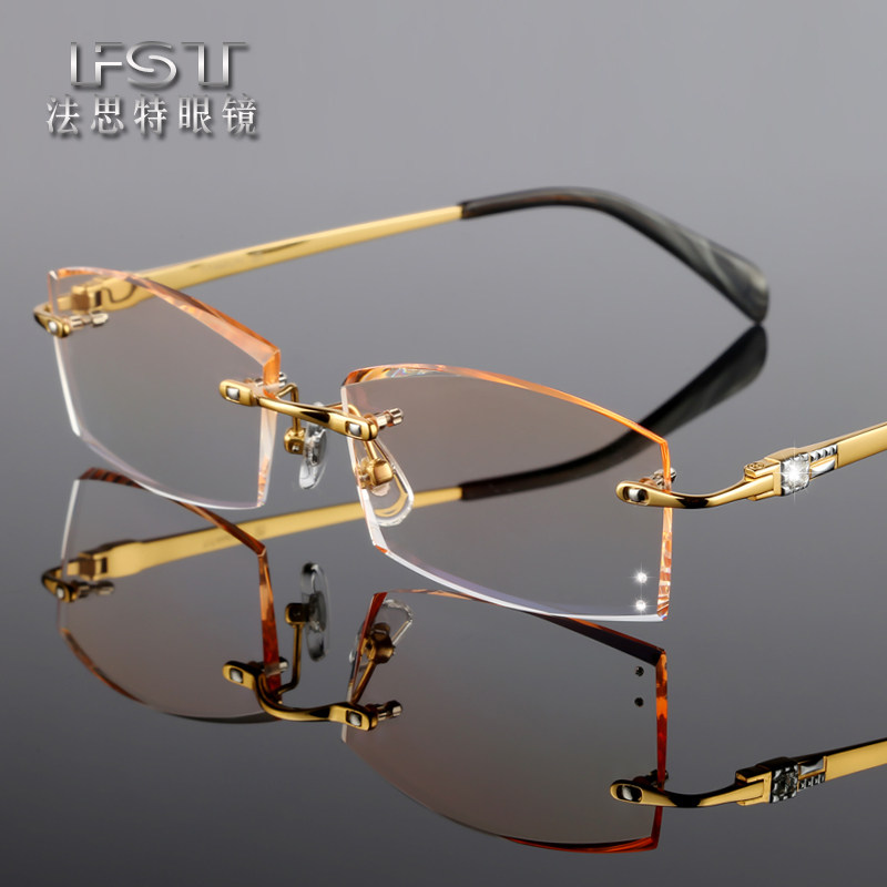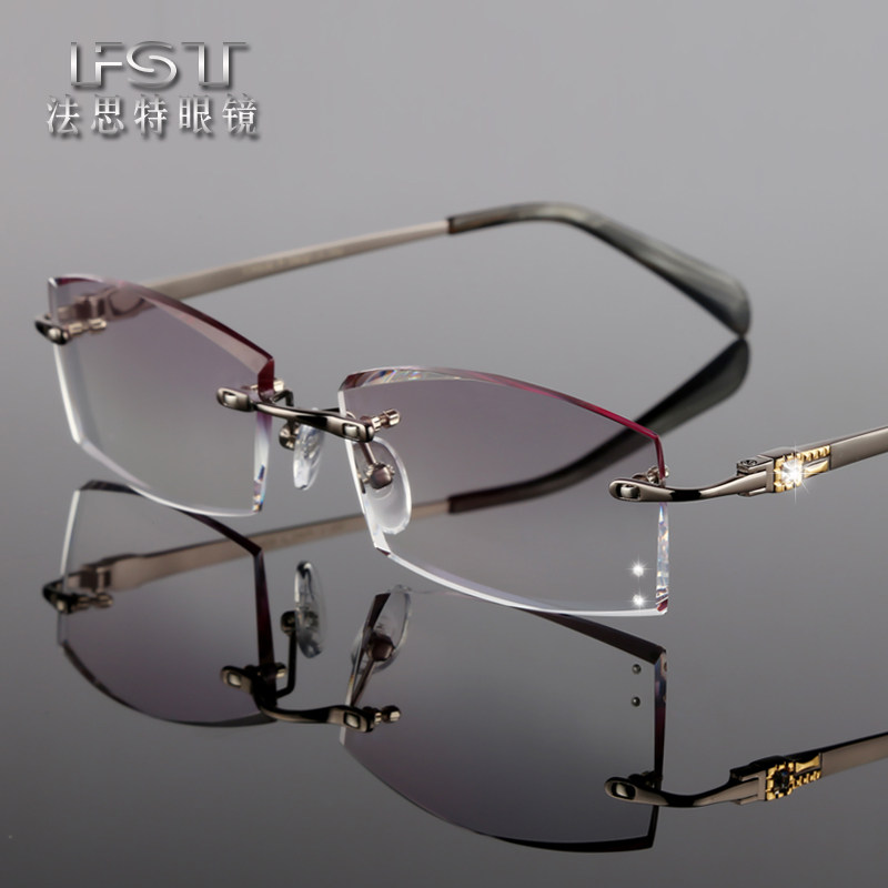 无框眼镜变色近视眼镜成品男款 纯钛钻石切边眼镜配商务眼镜框架 - 法思特眼镜企业店