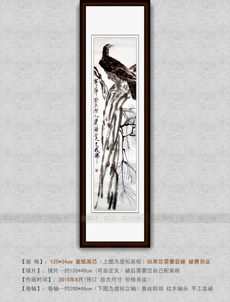 纯手绘国画仿真字画书画齐白石四尺竖条幅水墨松树老鹰独立图挂画 - 寅德轩书画手绘