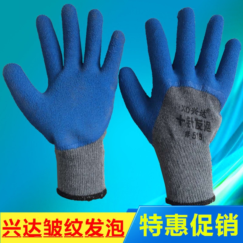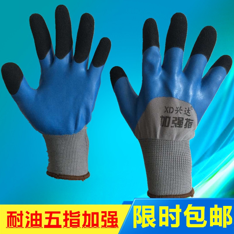 包邮兴达加强指乳胶皱纹防滑工作手套劳保手套耐磨浸胶透气半挂胶